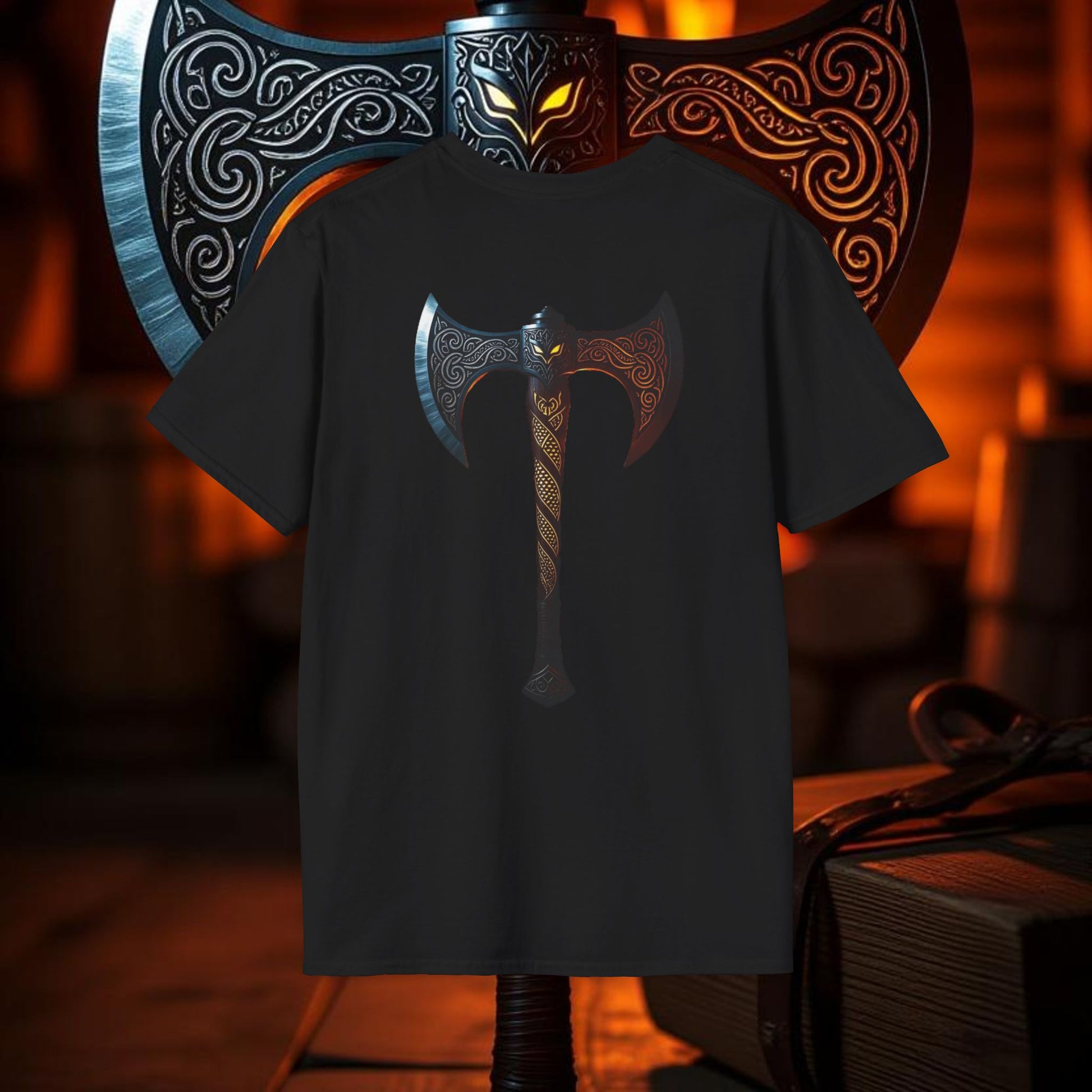 This Double Sided Battle Axe T-Shirt exudes a rugged and adventurous vibe, perfect for those who appreciate Norse mythology and history. It is ideal for fans of fantasy, cosplay enthusiasts, and people looking for a unique statement piece for casual wear. This T-Shirt is relevant for Viking-themed parties, historical reenactments, and as a gift for history buffs.