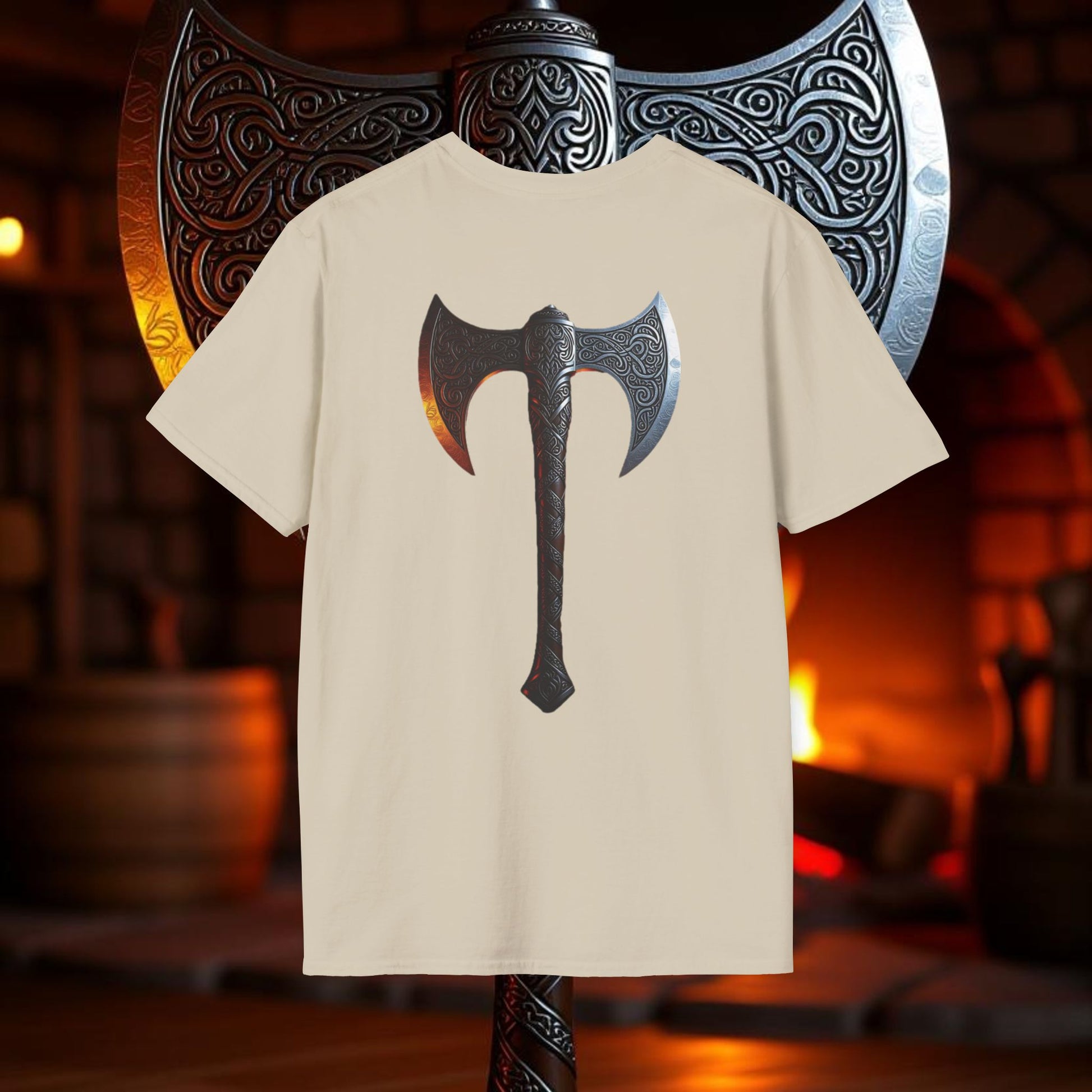 This Double Sided Battle Axe T-Shirt exudes a rugged and adventurous vibe, perfect for those who appreciate Norse mythology and history. It is ideal for fans of fantasy, cosplay enthusiasts, and people looking for a unique statement piece for casual wear. This T-Shirt is relevant for Viking-themed parties, historical reenactments, and as a gift for history buffs.