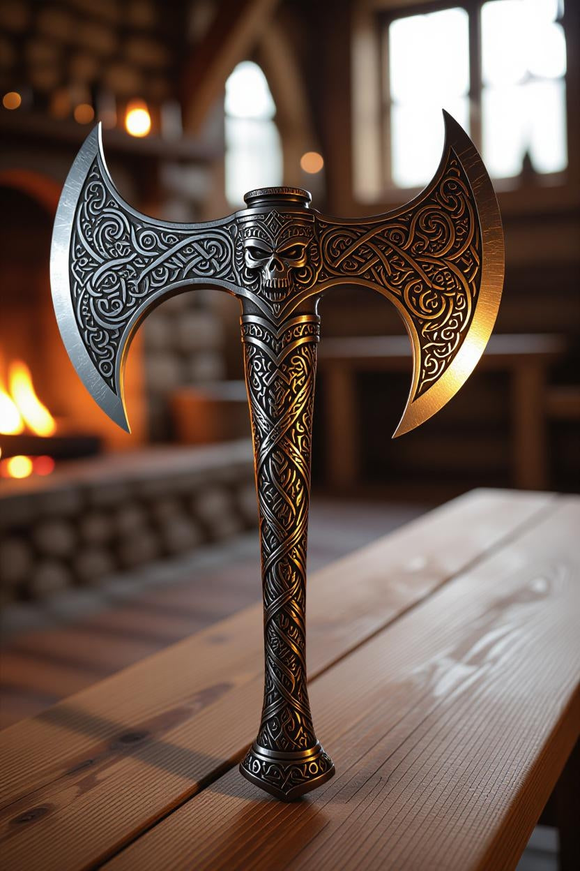 This Double Sided Battle Axe T-Shirt exudes a rugged and adventurous vibe, perfect for those who appreciate Norse mythology and history. It is ideal for fans of fantasy, cosplay enthusiasts, and people looking for a unique statement piece for casual wear. This T-Shirt is relevant for Viking-themed parties, historical reenactments, and as a gift for history buffs.